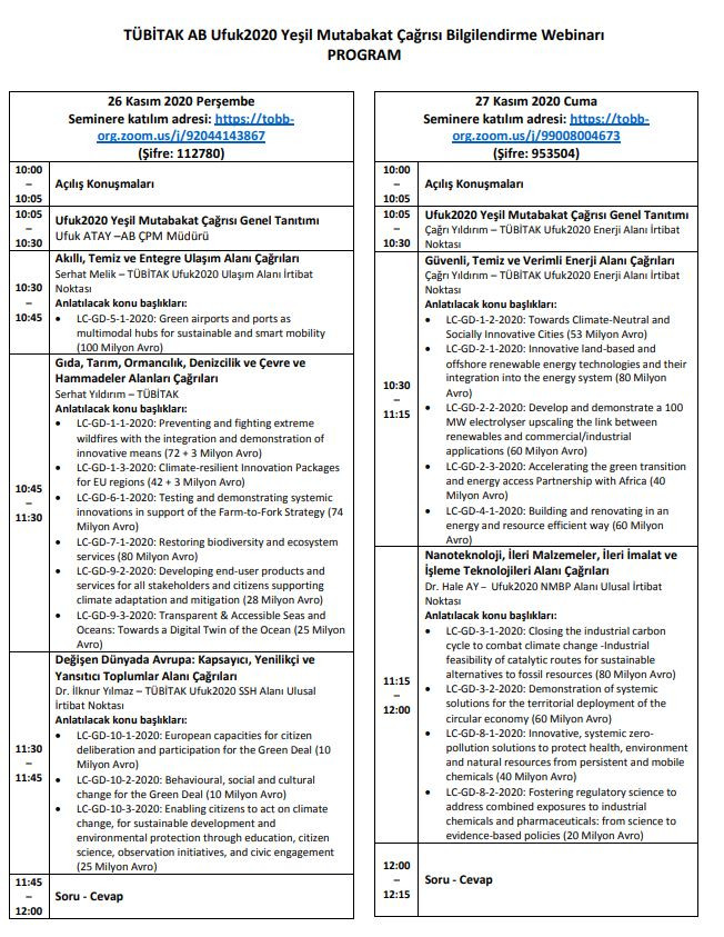 Türkiye Odalar ve Borsalar Birliği organizasyonunda TÜBİTAK işbirliğinde internet üzerinden